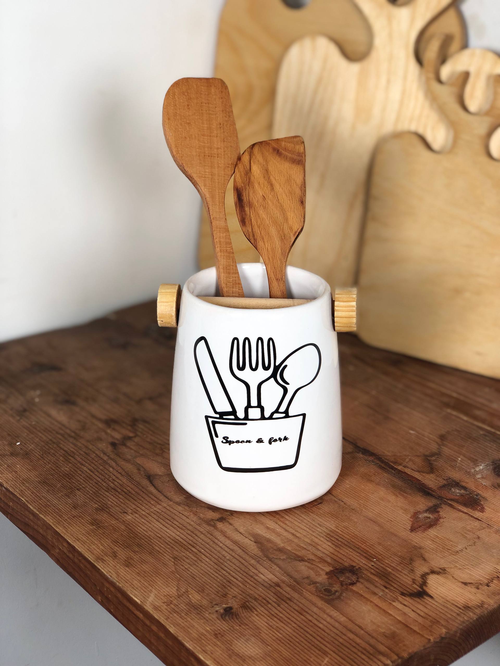 جا قاشق چنگالی دسته چوبی گرد