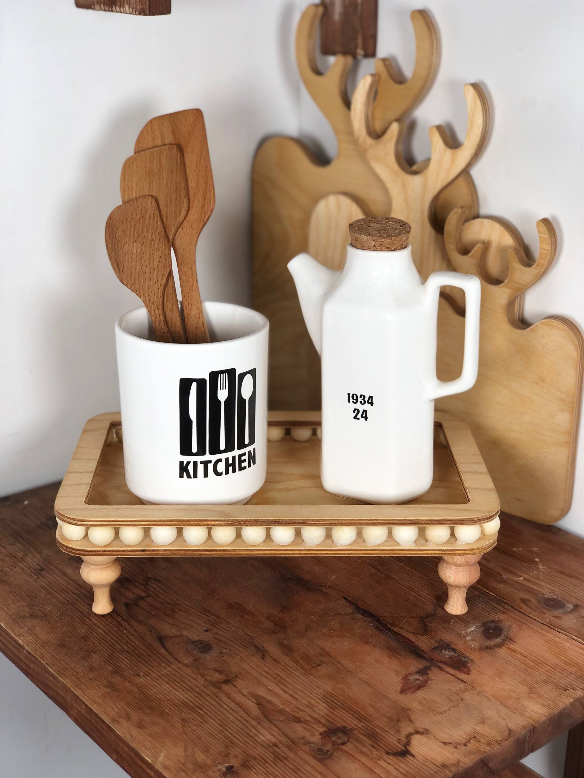 جا کفگیر ملاقه سرامیکی همراه با 3 تا قاشق چوبی از جنس چوب گردو