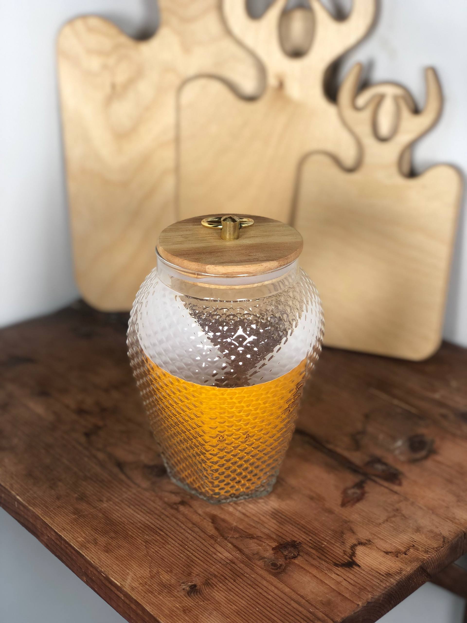 بانکه شیشه ای درب چوب بامبو