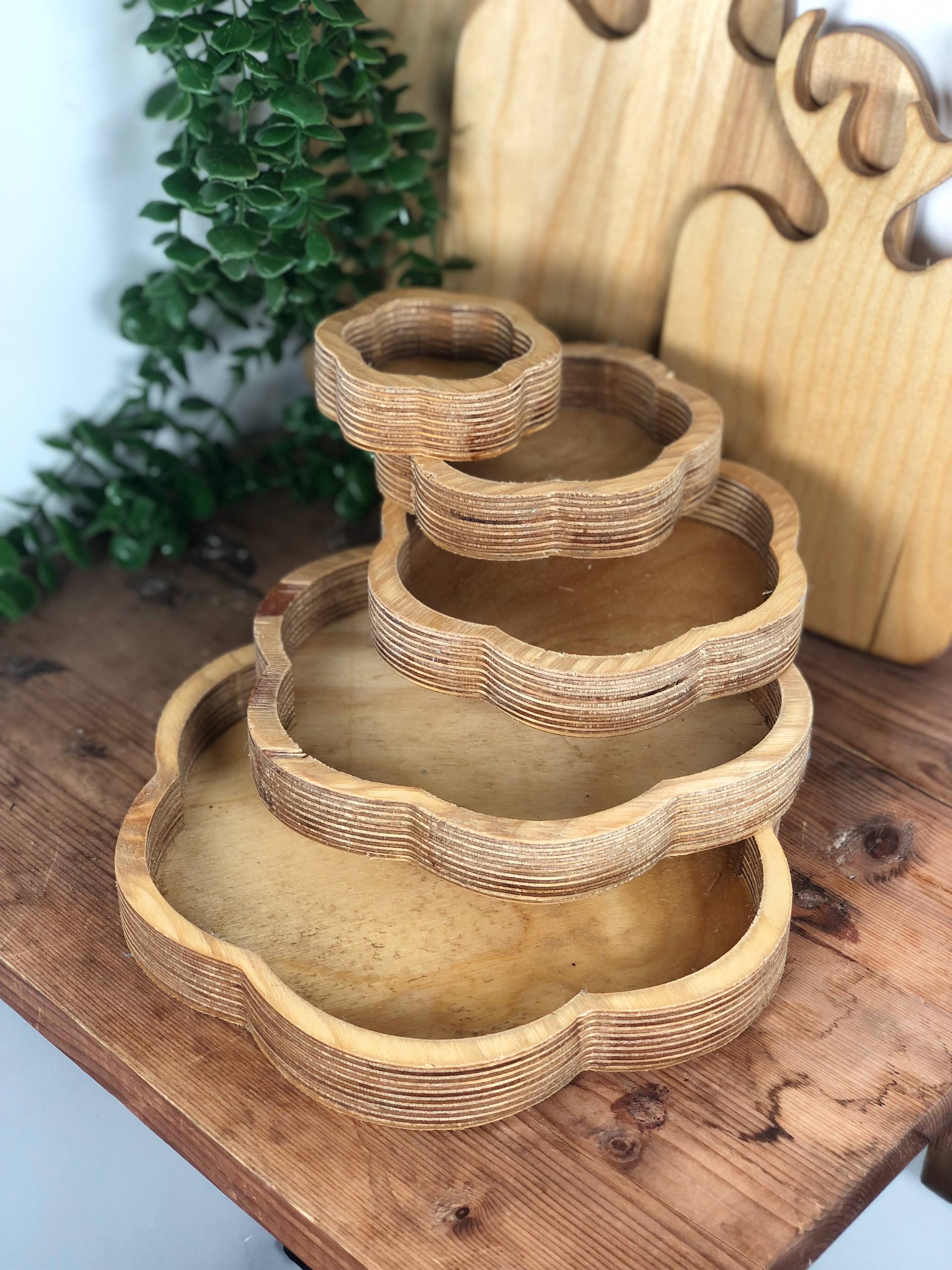 سینی سرو گرد 5عددی چوبی